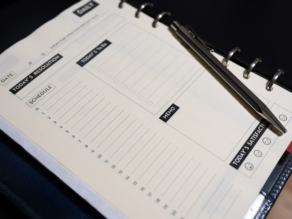 - ToDoリスト(Task): 「今日絶対にやること」を箇条書きにし、完了したら万年筆で線を引いて消し込みます。